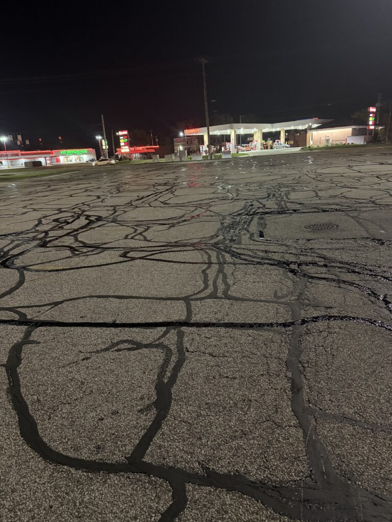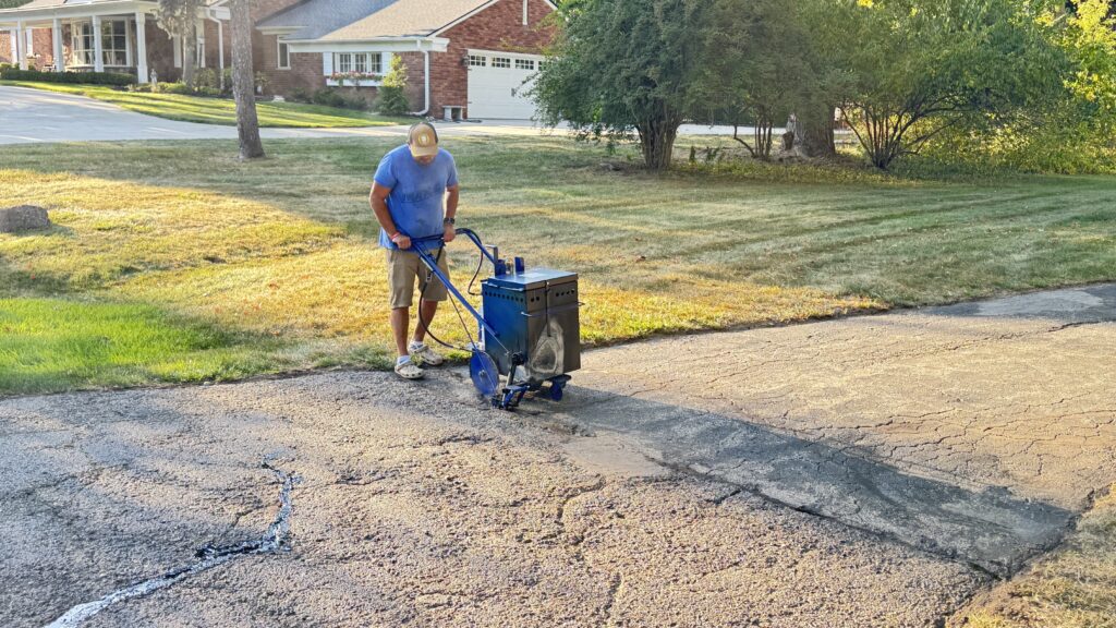 Before sealing, we can clean and prep cracks so the sealcoat adheres better and protects the surface more effectively — an important step for long-lasting results.